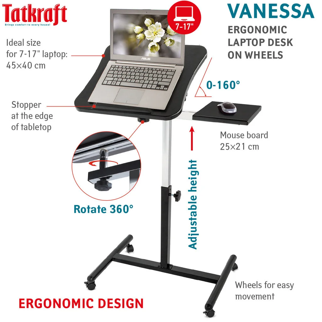 - Erittäin liikkuva, kompakti pöytä pyörillä, jossa on erillinen paikka hiirelle;