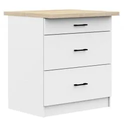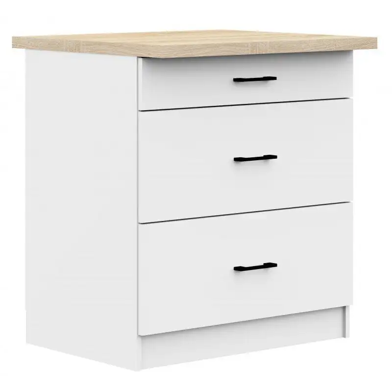Kompaktit ja käytännölliset huonekalut on helppo nostaa ja siirtää. Joskus se voidaan koota, mikä vapauttaa vielä enemmän tilaa. Tästä syystä on mahdollista luoda minimalistinen ja ergonominen ympäristö, jossa on tilaa muille suunnitteluratkaisuille ja mukavalle käsittelylle. Toisin sanoen Keittiökaappi NORE Oliwia S80, 3 laatikkoa, valkoinen sopii helposti luotavaan ympäristöön eikä häiritse viime hetken päätöksiä.