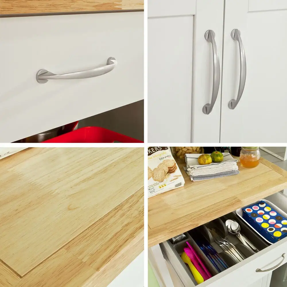 Tämä tyylikäs ja liikuteltava pyörillä varustettu keittiökaappi sopii täydellisesti keittiöösi.