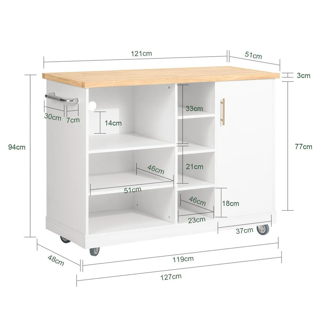 Pyörillä Varustettu Pöytä SoBuy FBT67-W, Valkoinen