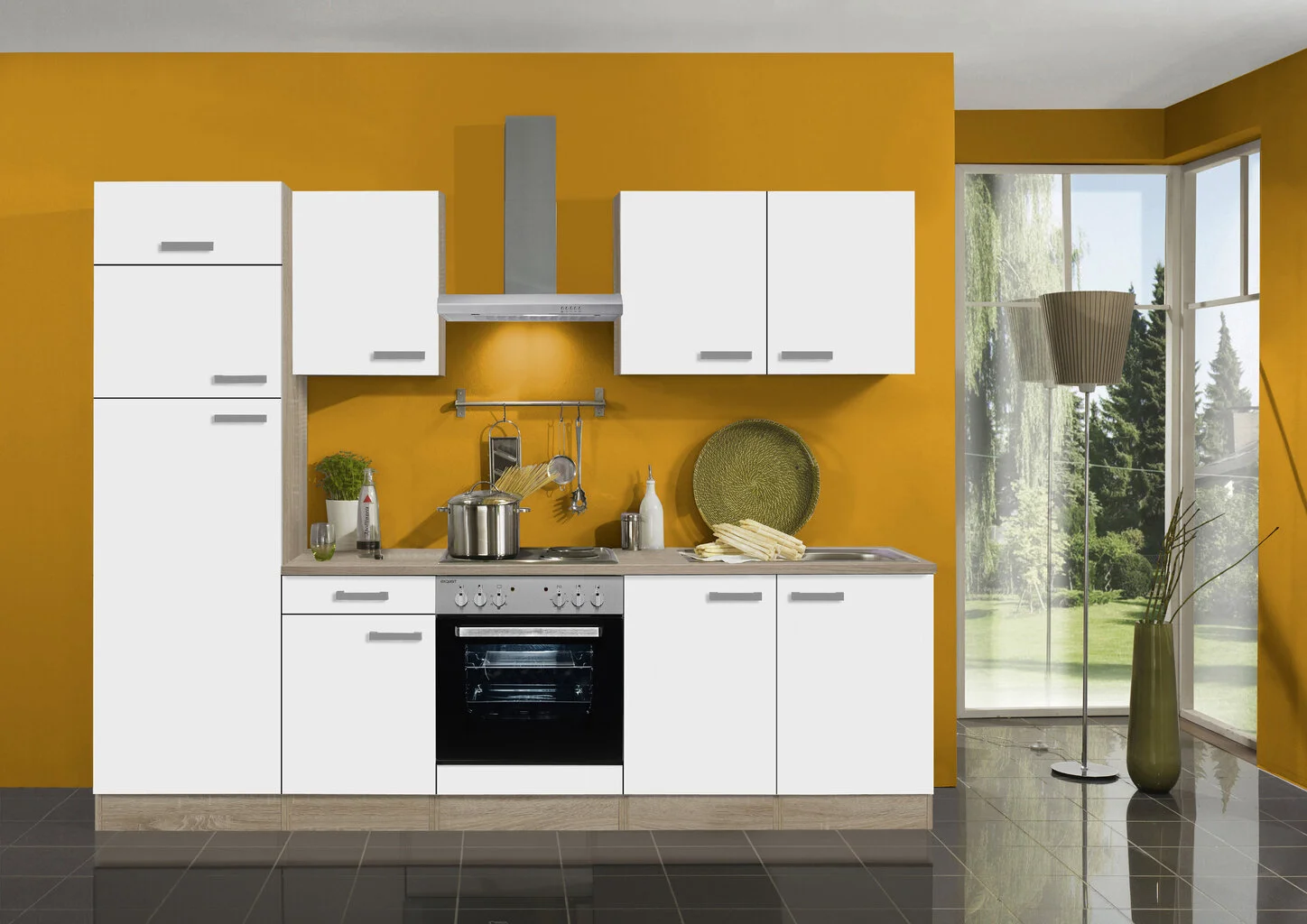 Levyn yläkerros peitetään usein erityisellä kalvolla, joka varmistaa huonekalun lujuuden. Viimeisimpien tuotantoteknologioiden avulla nämä laatat voivat olla kosteudenkestäviä, minkä vuoksi nämä materiaalit eroavat monipuolisuudestaan ja sopivat mihin tahansa huoneeseen. Keittiön kaappisarja Jaka Optikompakt Zamora, 270 cm, valkoinen/ruskea löytää varmasti paikan kodistasi!