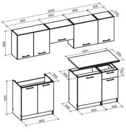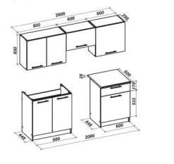 Halmar Keittiö Marija 200 Cm, Kiiltävä Valkoinen/sonoma Tammi