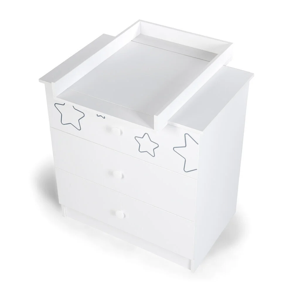 Levyn yläkerros peitetään usein erityisellä kalvolla, joka varmistaa huonekalun lujuuden. Viimeisimpien tuotantoteknologioiden avulla nämä laatat voivat olla kosteudenkestäviä, minkä vuoksi nämä materiaalit eroavat monipuolisuudestaan ja sopivat mihin tahansa huoneeseen. Lipasto hoitopöydällä Klupś Tino, valkoinen. löytää varmasti paikan kodistasi!