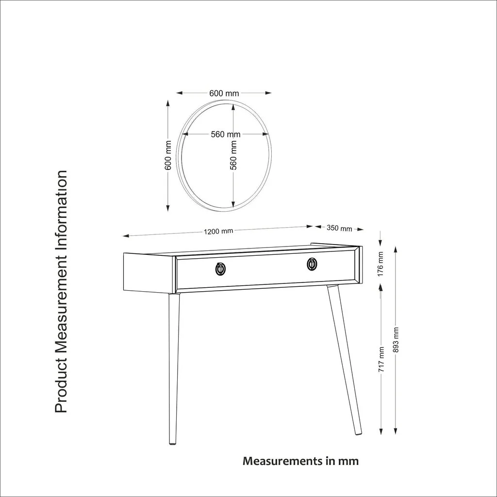• Pöydän mitat: pituus – 120 cm, leveys – 35cm, korkeus – 89,3 cm;