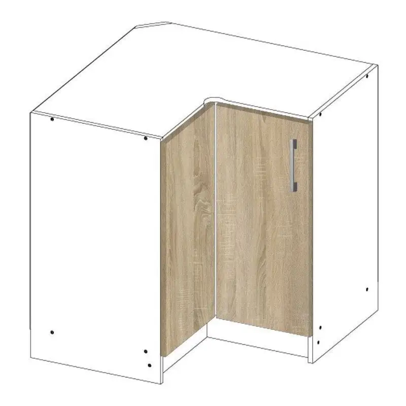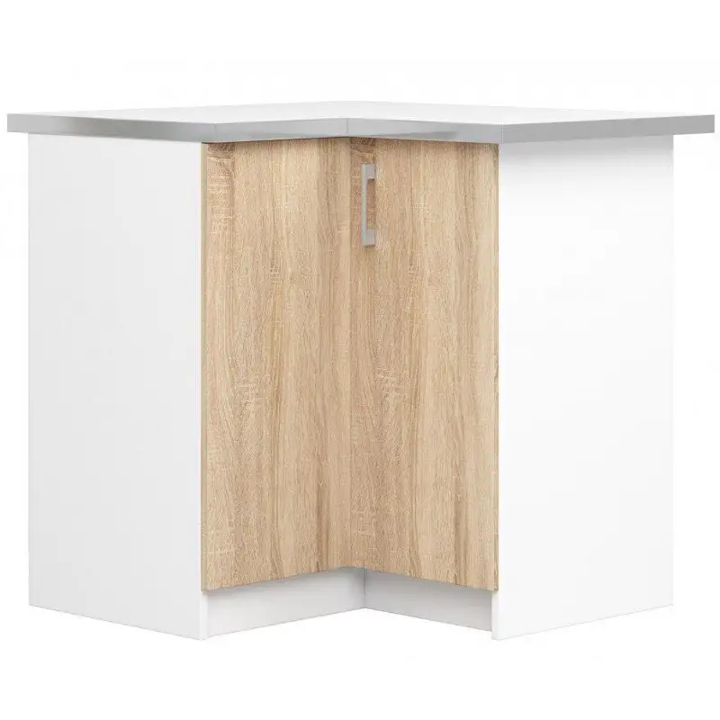 Kompaktit ja käytännölliset huonekalut on helppo nostaa ja siirtää. Joskus se voidaan koota, mikä vapauttaa vielä enemmän tilaa. Tästä syystä on mahdollista luoda minimalistinen ja ergonominen ympäristö, jossa on tilaa muille suunnitteluratkaisuille ja mukavalle käsittelylle. Toisin sanoen Kulma -keittiökaappi NORE Lima S90 / 90N, valkoinen / tammi sopii helposti luotavaan ympäristöön eikä häiritse viime hetken päätöksiä.
