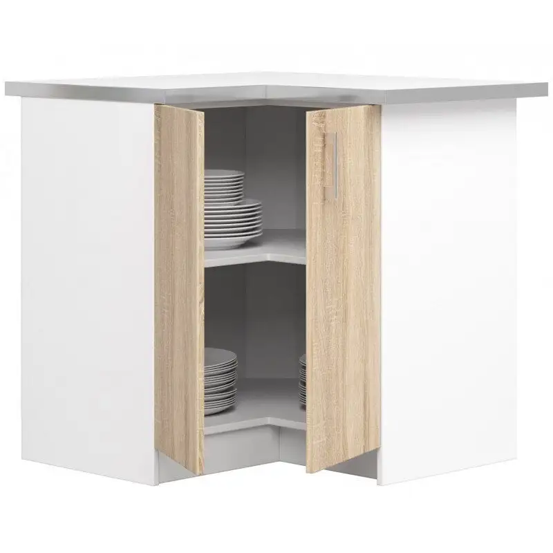 Levyn yläkerros peitetään usein erityisellä kalvolla, joka varmistaa huonekalun lujuuden. Viimeisimpien tuotantoteknologioiden avulla nämä laatat voivat olla kosteudenkestäviä, minkä vuoksi nämä materiaalit eroavat monipuolisuudestaan ja sopivat mihin tahansa huoneeseen. Kulma -keittiökaappi NORE Lima S90 / 90N, valkoinen / tammi löytää varmasti paikan kodistasi!