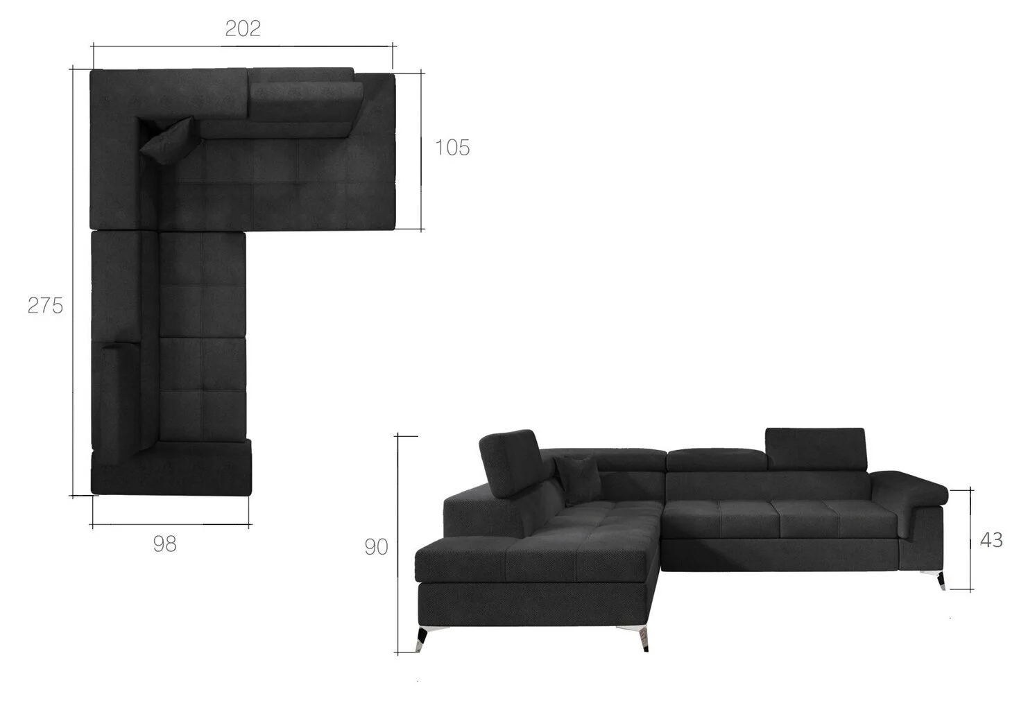 - Kulmasohva nukkumistoiminnolla ja säädettävät pääntuet.