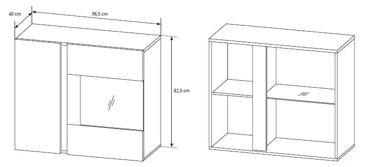 - Mitat: korkeus – 82,5 cm, syvyys – 40 cm, pituus – 96,5 cm