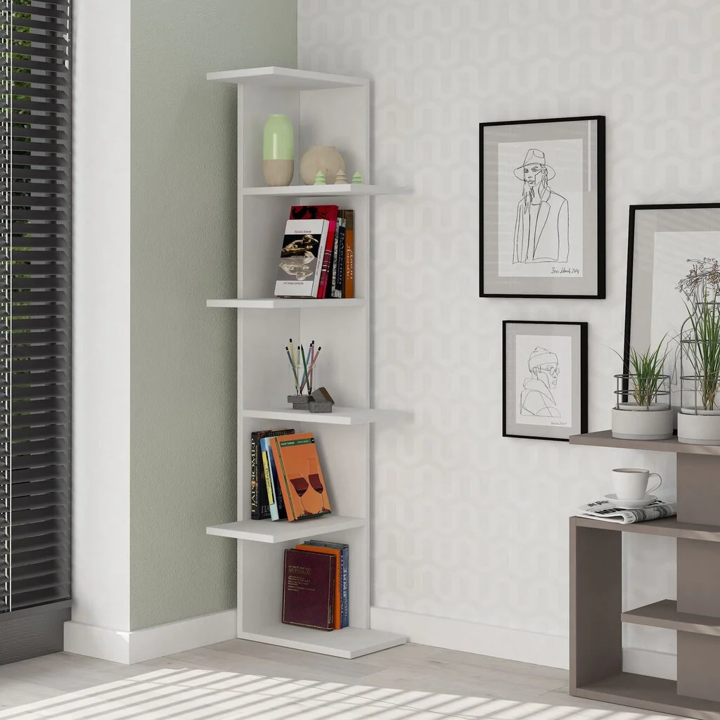 Kaikki nämä modernien huonekalujen ominaisuudet vahvistavat sen tosiasian, että tämän tyylin tuotteet ovat yksinkertaisia ja samalla erittäin yleisiä. Joten ne on helppo sijoittaa kaikenkokoisiin huoneisiin. Lattiahylly Kalune Design Saso, valkoinen pitää niistä, jotka haluavat luoda minimalistisen ja tilavan tilan, jossa on kunnollinen ja raikas luonto.