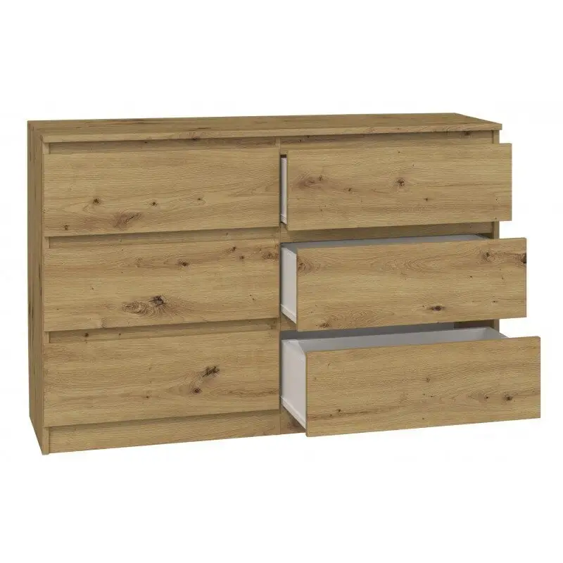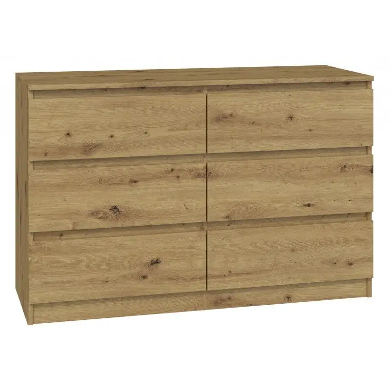 Levyn yläkerros peitetään usein erityisellä kalvolla, joka varmistaa huonekalun lujuuden. Viimeisimpien tuotantoteknologioiden avulla nämä laatat voivat olla kosteudenkestäviä, minkä vuoksi nämä materiaalit eroavat monipuolisuudestaan ja sopivat mihin tahansa huoneeseen. Lipasto Malwa M6 120 400, tammen väri löytää varmasti paikan kodistasi!