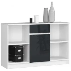 Levyn yläkerros peitetään usein erityisellä kalvolla, joka varmistaa huonekalun lujuuden. Viimeisimpien tuotantoteknologioiden avulla nämä laatat voivat olla kosteudenkestäviä, minkä vuoksi nämä materiaalit eroavat monipuolisuudestaan ja sopivat mihin tahansa huoneeseen. Lipasto NORE B17 120 cm, valkoinen/vaaleanharmaa löytää varmasti paikan kodistasi!