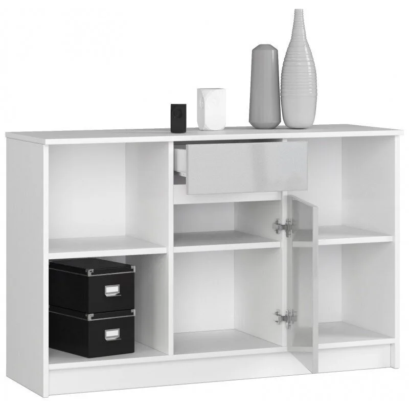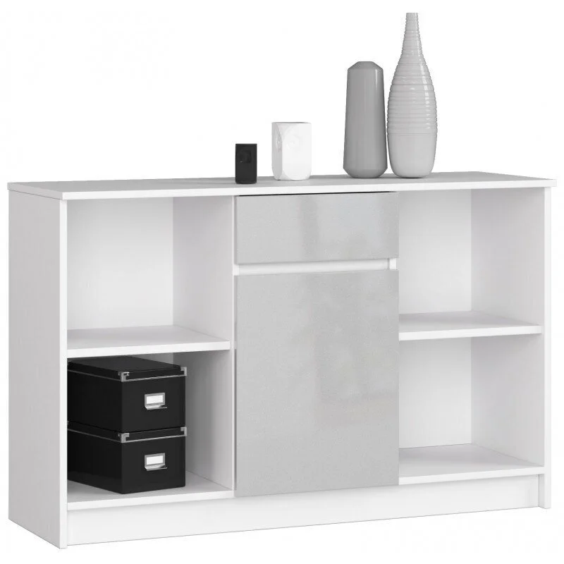 Levyn yläkerros peitetään usein erityisellä kalvolla, joka varmistaa huonekalun lujuuden. Viimeisimpien tuotantoteknologioiden avulla nämä laatat voivat olla kosteudenkestäviä, minkä vuoksi nämä materiaalit eroavat monipuolisuudestaan ja sopivat mihin tahansa huoneeseen. Lipasto NORE B17 120 cm, valkoinen/vaaleanharmaa löytää varmasti paikan kodistasi!