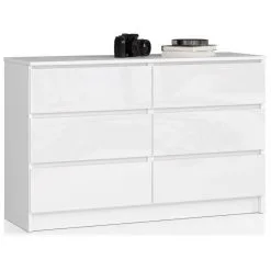 Levyn yläkerros peitetään usein erityisellä kalvolla, joka varmistaa huonekalun lujuuden. Viimeisimpien tuotantoteknologioiden avulla nämä laatat voivat olla kosteudenkestäviä, minkä vuoksi nämä materiaalit eroavat monipuolisuudestaan ja sopivat mihin tahansa huoneeseen. Lipasto NORE K120 6 laatikolla, valkoinen löytää varmasti paikan kodistasi!