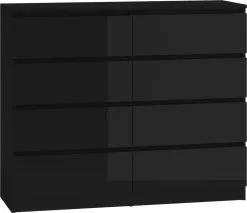 Levyn yläkerros peitetään usein erityisellä kalvolla, joka varmistaa huonekalun lujuuden. Viimeisimpien tuotantoteknologioiden avulla nämä laatat voivat olla kosteudenkestäviä, minkä vuoksi nämä materiaalit eroavat monipuolisuudestaan ja sopivat mihin tahansa huoneeseen. Lipasto NORE Malwa M8 120, kiiltävä musta löytää varmasti paikan kodistasi!