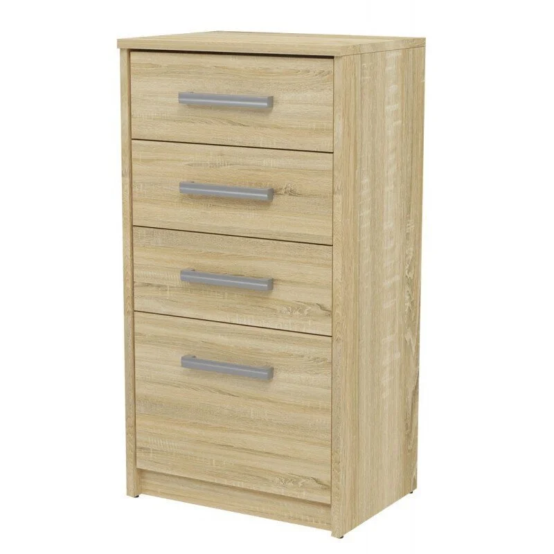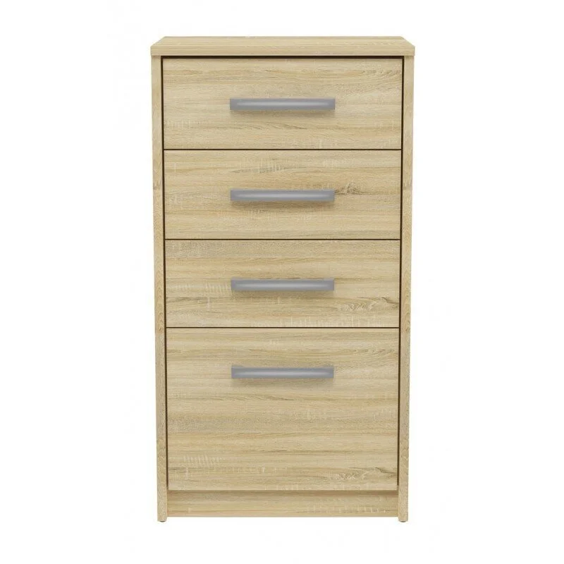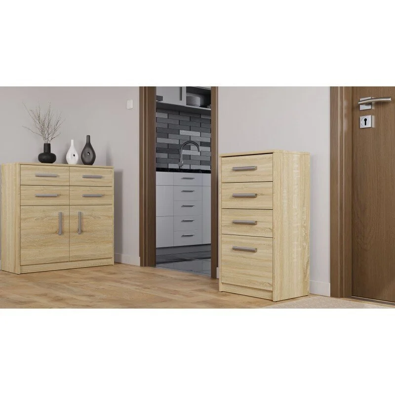 Levyn yläkerros peitetään usein erityisellä kalvolla, joka varmistaa huonekalun lujuuden. Viimeisimpien tuotantoteknologioiden avulla nämä laatat voivat olla kosteudenkestäviä, minkä vuoksi nämä materiaalit eroavat monipuolisuudestaan ja sopivat mihin tahansa huoneeseen. Lipasto Otis 4S, tammenvärinen löytää varmasti paikan kodistasi!