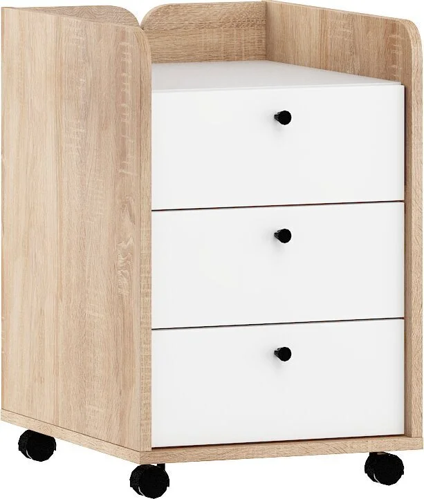 - Moderni lipasto pyörillä kolmella laatikolla.
