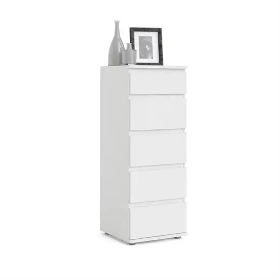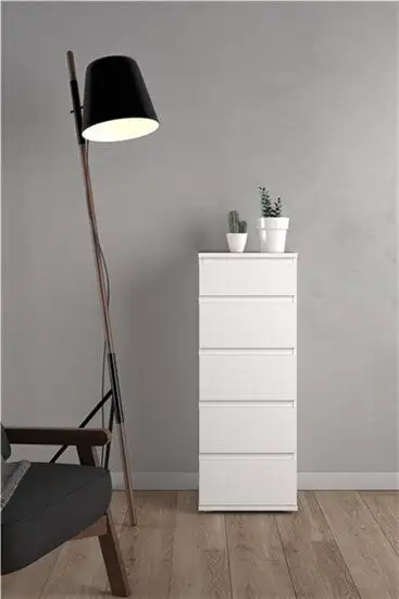Minimalistinen lipasto, jossa 5 laatikkoa, joihin mahtuu vaatteet, liinavaatteet ja monet muut tavarat. Yhdistämällä sen muihin Nova-kokoelman huonekaluihin luot toimivan ja modernin kodin sisustuksen.
