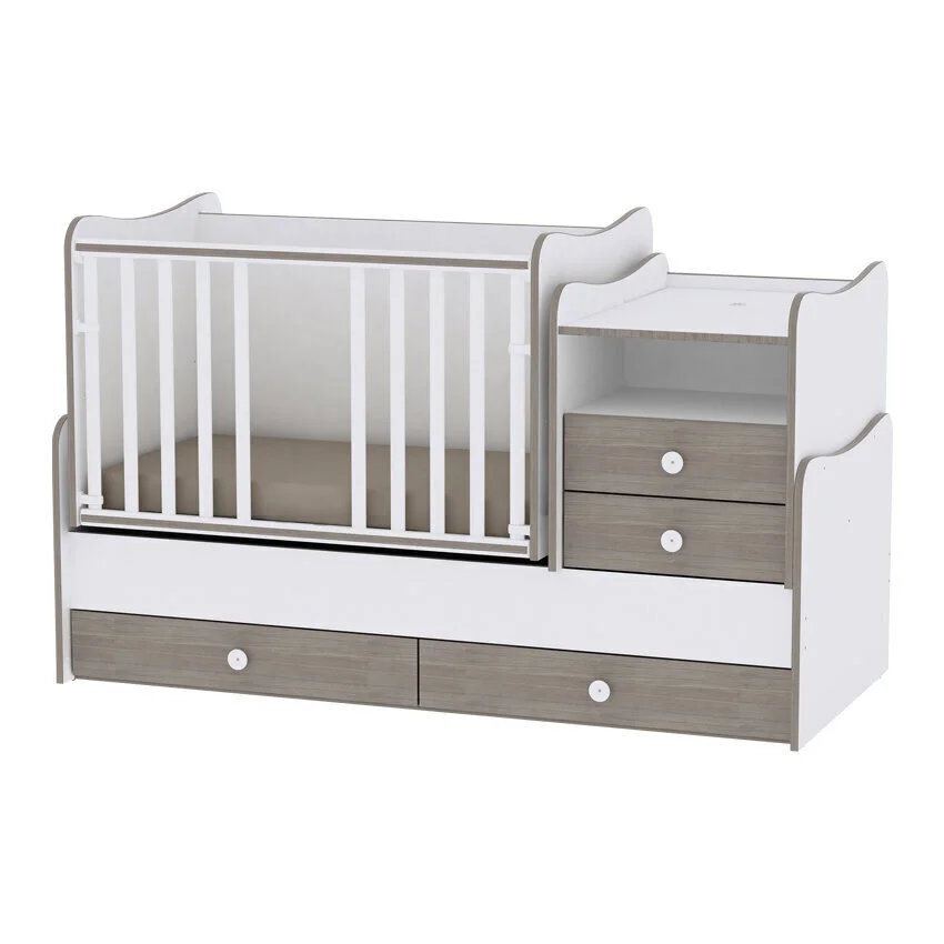 Levyn yläkerros peitetään usein erityisellä kalvolla, joka varmistaa huonekalun lujuuden. Viimeisimpien tuotantoteknologioiden avulla nämä laatat voivat olla kosteudenkestäviä, minkä vuoksi nämä materiaalit eroavat monipuolisuudestaan ja sopivat mihin tahansa huoneeseen. Lorelli Combo lapsen mukana kasvava sänky ja laatikosto, 110 x 62, valkoinen / ruskea löytää varmasti paikan kodistasi!