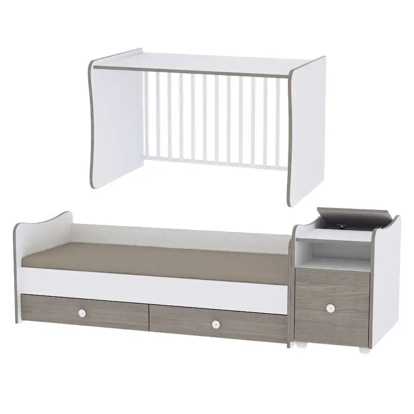 Levyn yläkerros peitetään usein erityisellä kalvolla, joka varmistaa huonekalun lujuuden. Viimeisimpien tuotantoteknologioiden avulla nämä laatat voivat olla kosteudenkestäviä, minkä vuoksi nämä materiaalit eroavat monipuolisuudestaan ja sopivat mihin tahansa huoneeseen. Lorelli Trend Plus New -pinnasänky / juniorsänky / laatikosto, 110 x 62, valkoinen / harmaa löytää varmasti paikan kodistasi!
