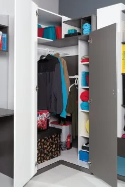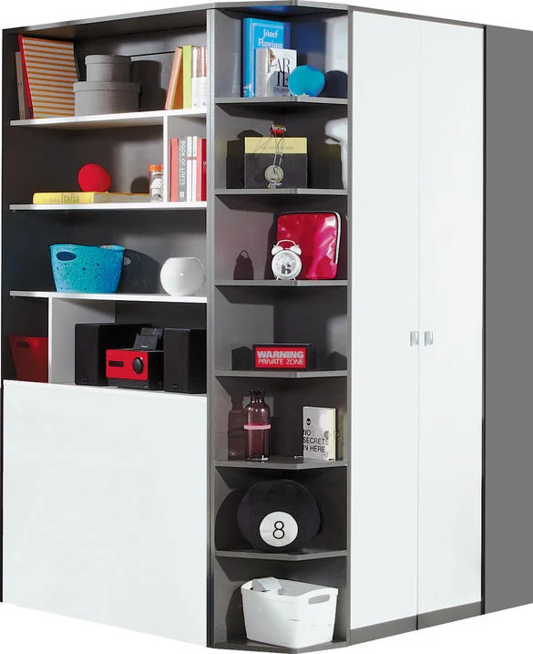 Levyn yläkerros peitetään usein erityisellä kalvolla, joka varmistaa huonekalun lujuuden. Viimeisimpien tuotantoteknologioiden avulla nämä laatat voivat olla kosteudenkestäviä, minkä vuoksi nämä materiaalit eroavat monipuolisuudestaan ja sopivat mihin tahansa huoneeseen. Tablo 1 kulmakaappi, valkoinen/harmaa löytää varmasti paikan kodistasi!