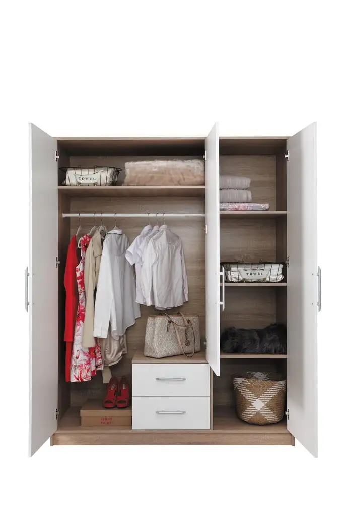 Levyn yläkerros peitetään usein erityisellä kalvolla, joka varmistaa huonekalun lujuuden. Viimeisimpien tuotantoteknologioiden avulla nämä laatat voivat olla kosteudenkestäviä, minkä vuoksi nämä materiaalit eroavat monipuolisuudestaan ja sopivat mihin tahansa huoneeseen. Vaatekaappi Smart SRL2, tammi/valkoinen löytää varmasti paikan kodistasi!