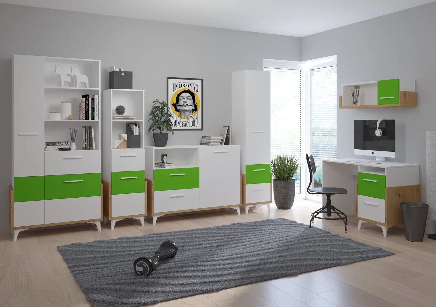 Levyn yläkerros peitetään usein erityisellä kalvolla, joka varmistaa huonekalun lujuuden. Viimeisimpien tuotantoteknologioiden avulla nämä laatat voivat olla kosteudenkestäviä, minkä vuoksi nämä materiaalit eroavat monipuolisuudestaan ja sopivat mihin tahansa huoneeseen. Meblocross Hey 18, Hyllykkö, valkoinen/vihreä löytää varmasti paikan kodistasi!
