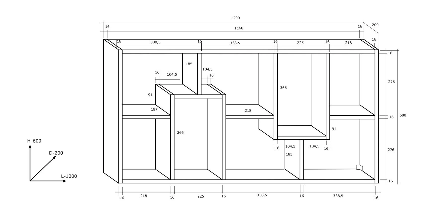 - Hyllyn mitat: vaakakorkeus – 60 cm, pituus – 120 cm, syvyys – 20 cm;