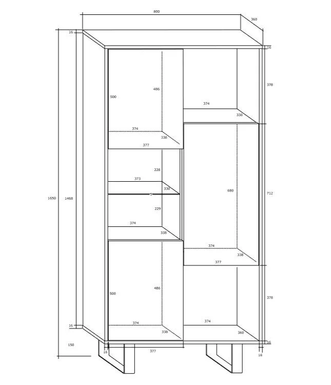 - -Mitat: syvyys – 36 cm, leveys – 80 cm, korkeus – 165 cm.