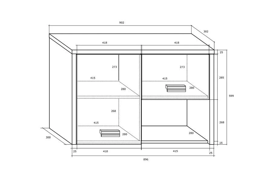 -Mitat: syvyys – 32 cm, leveys – 90 cm, korkeus – 60 cm,.