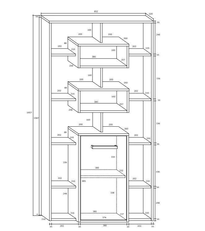 - -Mitat: syvyys – 22 cm, leveys – 85 cm, korkeus – 161 cm,,,