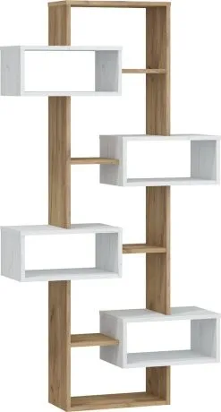 Kaikki nämä modernien huonekalujen ominaisuudet vahvistavat sen tosiasian, että tämän tyylin tuotteet ovat yksinkertaisia ja samalla erittäin yleisiä. Joten ne on helppo sijoittaa kaikenkokoisiin huoneisiin. Hylly Rio, tammi / valkoinen. pitää niistä, jotka haluavat luoda minimalistisen ja tilavan tilan, jossa on kunnollinen ja raikas luonto.
