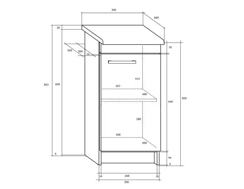 - Mitat: syvyys 60 cm, leveys 30 cm, korkeus 85 cm.