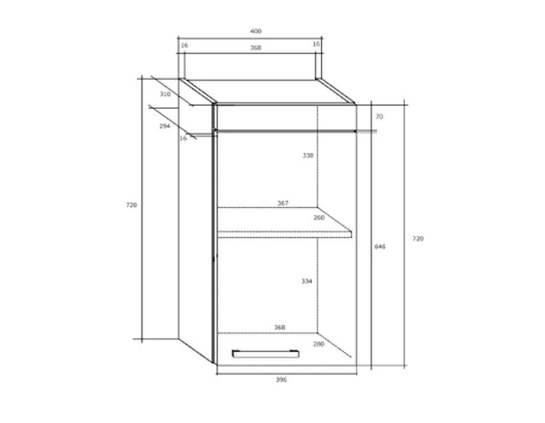 - Seinäkaappi 1 ovella;