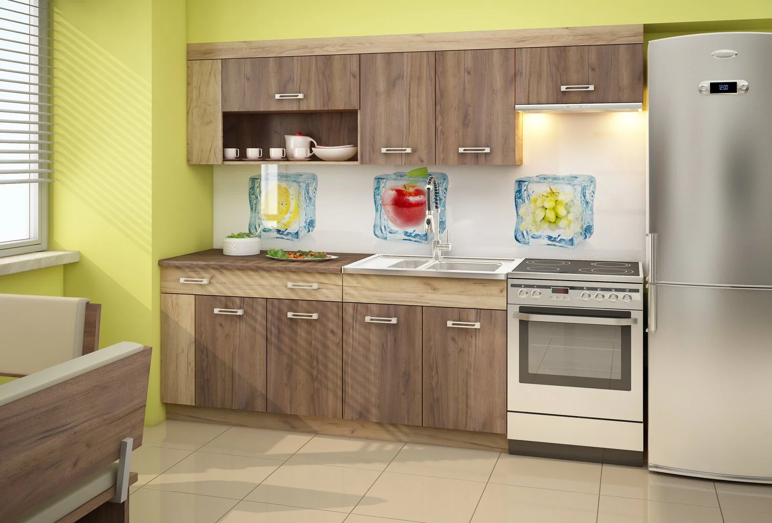 - Seinäkaapit: kahdella ovella varustetun seinäkaapin leveys – 80 cm, yhden oven tai yhden oven kaapin leveys – 100 cm, kaapin oven leveys 60 cm;