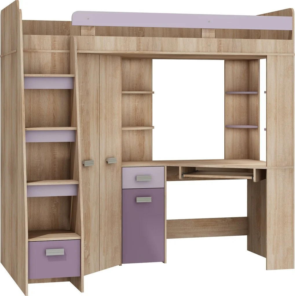 Levyn yläkerros peitetään usein erityisellä kalvolla, joka varmistaa huonekalun lujuuden. Viimeisimpien tuotantoteknologioiden avulla nämä laatat voivat olla kosteudenkestäviä, minkä vuoksi nämä materiaalit eroavat monipuolisuudestaan ja sopivat mihin tahansa huoneeseen. Kerrossänky Antresola L, 200×80 cm, tammi/liila löytää varmasti paikan kodistasi!