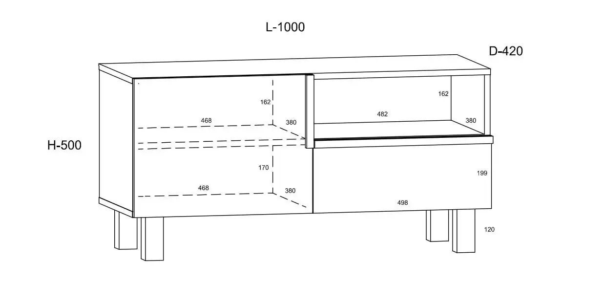 - Tason mitat: leveys – 100 cm, syvyys – 42 cm, korkeus – 50 cm;