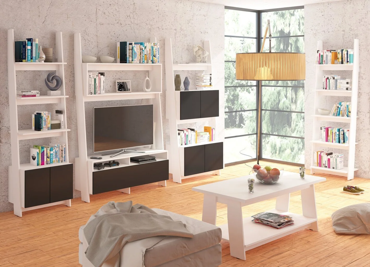 Levyn yläkerros peitetään usein erityisellä kalvolla, joka varmistaa huonekalun lujuuden. Viimeisimpien tuotantoteknologioiden avulla nämä laatat voivat olla kosteudenkestäviä, minkä vuoksi nämä materiaalit eroavat monipuolisuudestaan ja sopivat mihin tahansa huoneeseen. Lattiahylly Rack 60, valkoinen I. löytää varmasti paikan kodistasi!
