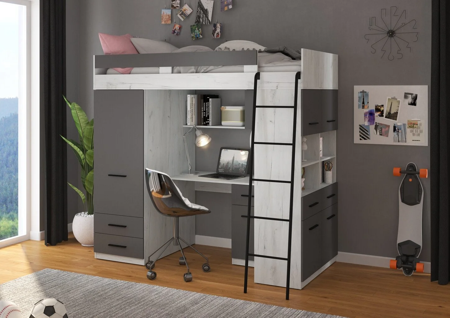 Levyn yläkerros peitetään usein erityisellä kalvolla, joka varmistaa huonekalun lujuuden. Viimeisimpien tuotantoteknologioiden avulla nämä laatat voivat olla kosteudenkestäviä, minkä vuoksi nämä materiaalit eroavat monipuolisuudestaan ja sopivat mihin tahansa huoneeseen. Meblocross Level P, Kerrossänky, 90×200 cm, valkoinen/harmaa löytää varmasti paikan kodistasi!