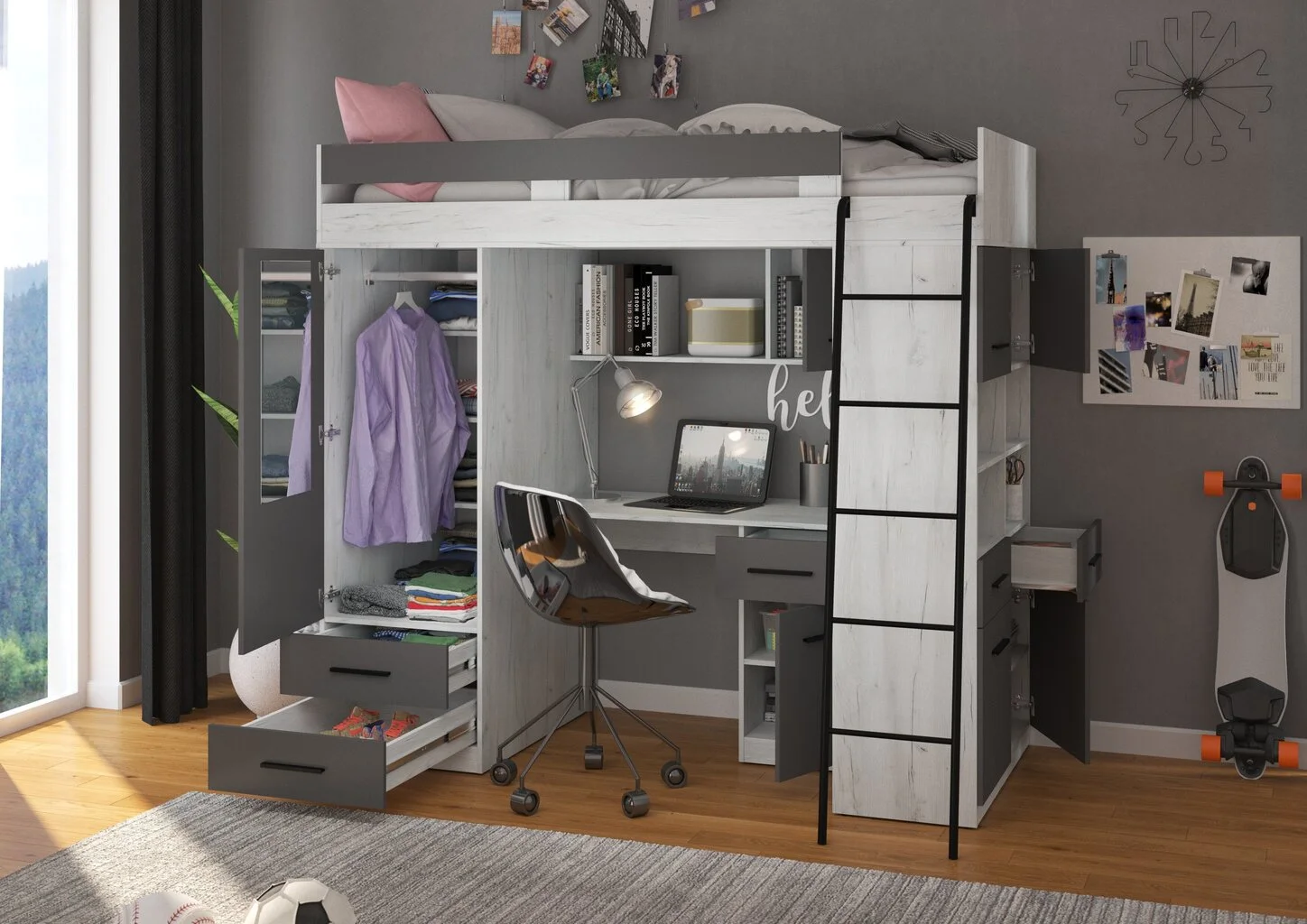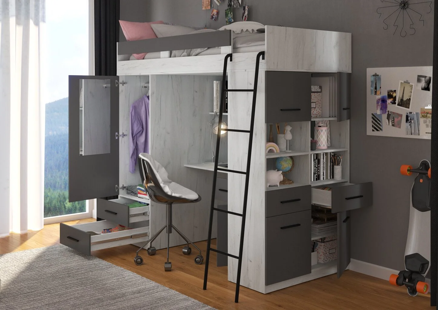 - Eksklusiivinen muotoilu, toimivan kalustesarjan kerrossänky lastenhuoneeseen.