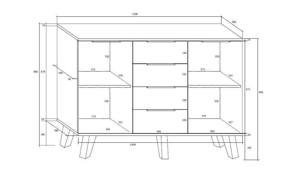 - Mitat: korkeus 89 cm, leveys 120 cm, syvyys 38 cm;
