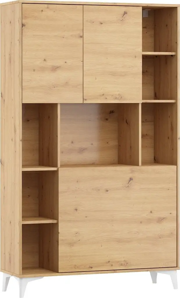 - Moderni taitettava monitoimihyllykaappi kahdella ovella ja integroidulla pöydällä.