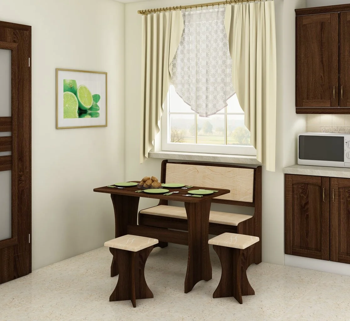Levyn yläkerros peitetään usein erityisellä kalvolla, joka varmistaa huonekalun lujuuden. Viimeisimpien tuotantoteknologioiden avulla nämä laatat voivat olla kosteudenkestäviä, minkä vuoksi nämä materiaalit eroavat monipuolisuudestaan ja sopivat mihin tahansa huoneeseen. Ruokailuryhmä, sis: pöytä, penkki ja 2 x jakkara, vaaleanruskea / beige löytää varmasti paikan kodistasi!