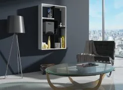 Kaikki nämä modernien huonekalujen ominaisuudet vahvistavat sen tosiasian, että tämän tyylin tuotteet ovat yksinkertaisia ja samalla erittäin yleisiä. Joten ne on helppo sijoittaa kaikenkokoisiin huoneisiin. Seinähylly Domino A, valkoinen/musta pitää niistä, jotka haluavat luoda minimalistisen ja tilavan tilan, jossa on kunnollinen ja raikas luonto.