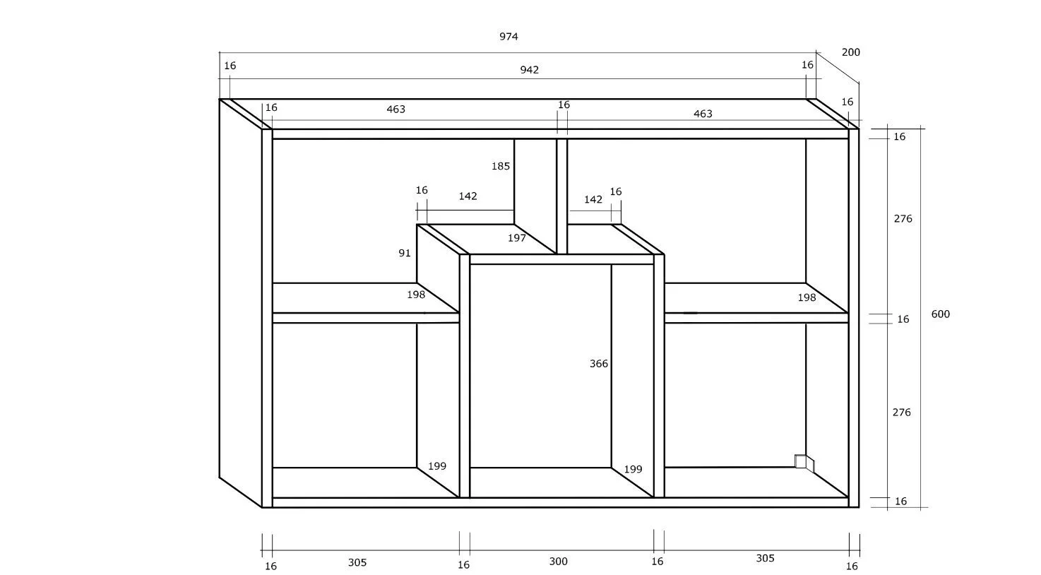 - Mitat: pituus 60 cm, syvyys 97.4 cm, korkeus 20 cm.