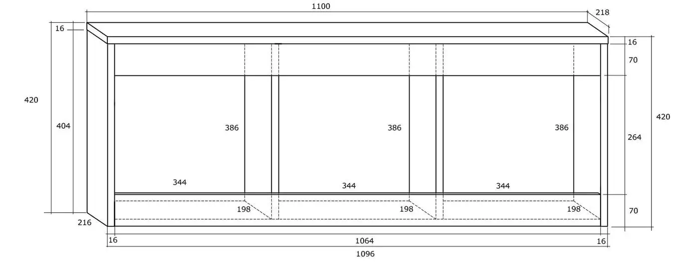 - -Mitat: syvyys – 22 cm, leveys – 110 cm, korkeus – 42 cm,.