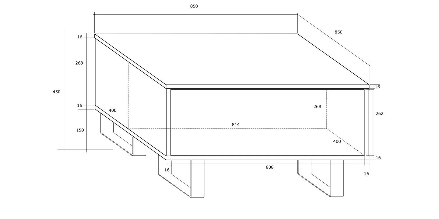 - Mitat: leveys – 85 cm, pituus – 85 cm, korkeus – 45 cm.