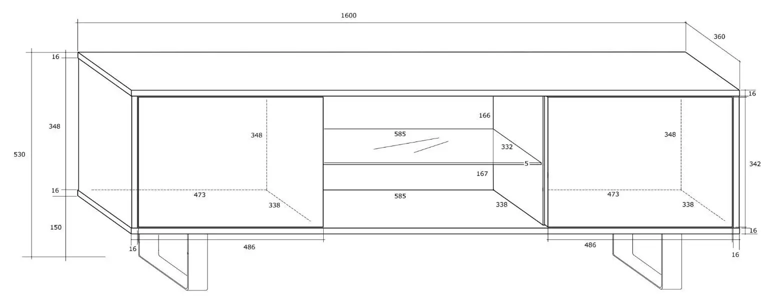 - Mitat: syvyys – 36 cm, leveys – 160 cm, korkeus – 53 cm;
