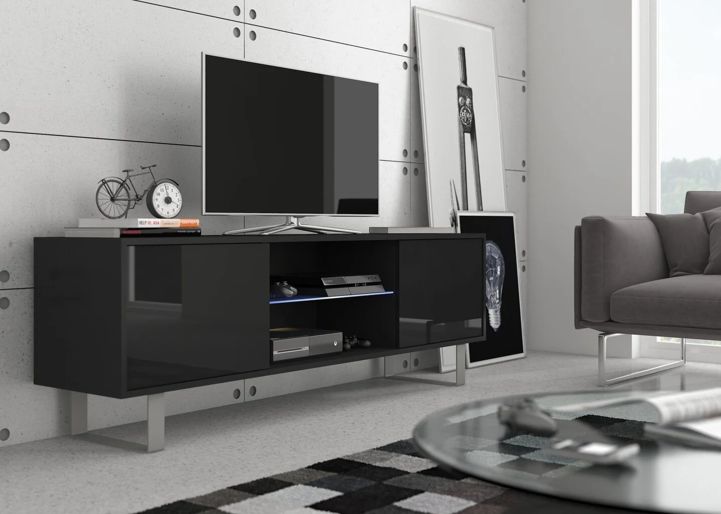 Kaikki nämä modernien huonekalujen ominaisuudet vahvistavat sen tosiasian, että tämän tyylin tuotteet ovat yksinkertaisia ja samalla erittäin yleisiä. Joten ne on helppo sijoittaa kaikenkokoisiin huoneisiin. TV-taso King 2, musta pitää niistä, jotka haluavat luoda minimalistisen ja tilavan tilan, jossa on kunnollinen ja raikas luonto.