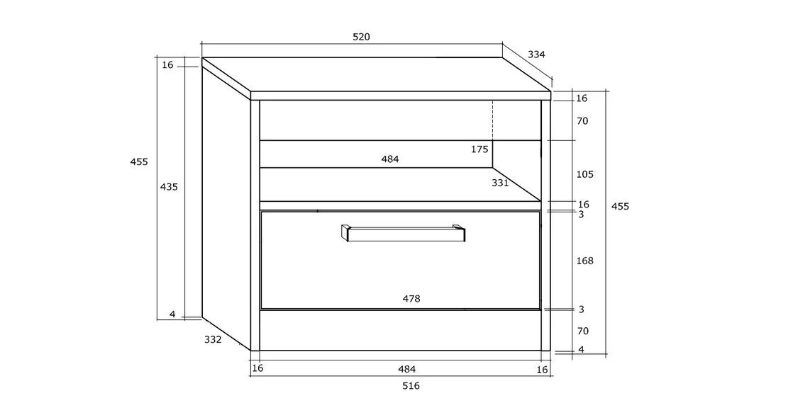 - Mitat: syvyys – 34 cm, leveys – 52 cm, korkeus – 46 cm;