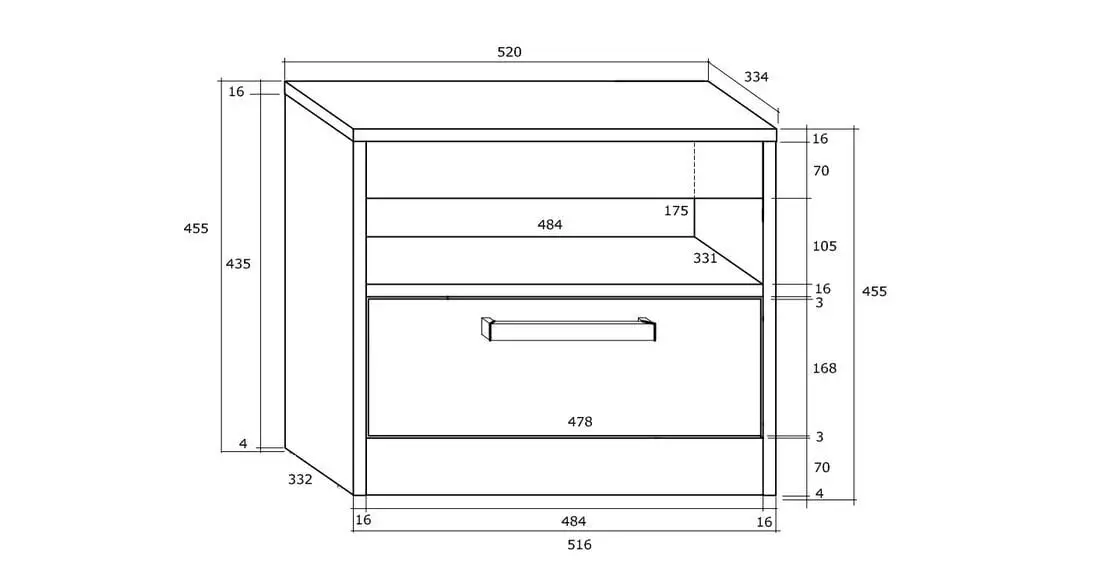 - Mitat: syvyys – 34 cm, leveys – 52 cm, korkeus – 46 cm;